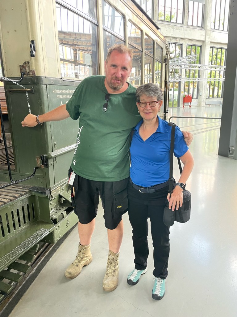 A museum worker, Christian, told us that we had crossed into a forbidden zone next to the tram. We explained that I wanted a close look because my father, like all Jewish children in 1936, had been expelled from public school in Nuremberg, forced to travel by tram every day to the Jewish school in neighboring Fürth.