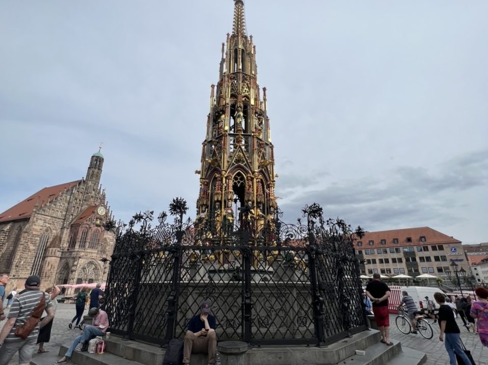 We arrived in Nuremberg at lunchtime. Our first stop was the Lebkuchen Schmidt store. Schmidt has made these local spice cookie specialties since … 1926! At my father’s suggestion, we bought broken Lebkuchen without a tin, for the same great taste at a fraction of the cost.