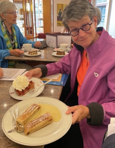 My skinny mother was sent to Cafe Sel to eat Schlag (cream) off a spoon. It was there that we stopped for cake. I was flooded with memories of my New York grandmother as I ate Zwetschgenkuchen (plum cake). Jeffrey had apple strudel (I had a taste), another of her specialties.