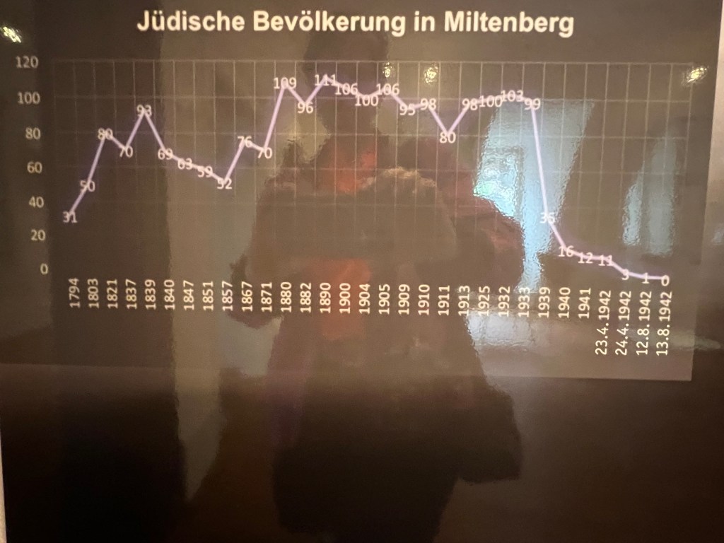 We walked by one of what once were three local synagogues (now there are none), saw salvaged Jewish religious objects in the local museum, and stopped at some of the Stolperstein (“stumbling stones”) that memorialize a few of the Miltenberg Jews who were deported and murdered.
